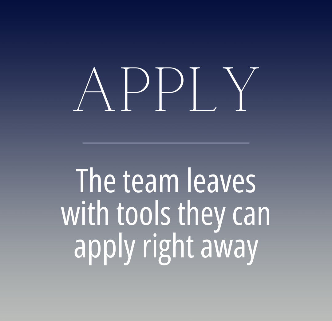 Go deeper with follow-up sessions tailored to your team's needs. Topics can include advanced communication strategies, leadership development, conflict resolution, and more. Training length and frequency are customized to fit your organization.